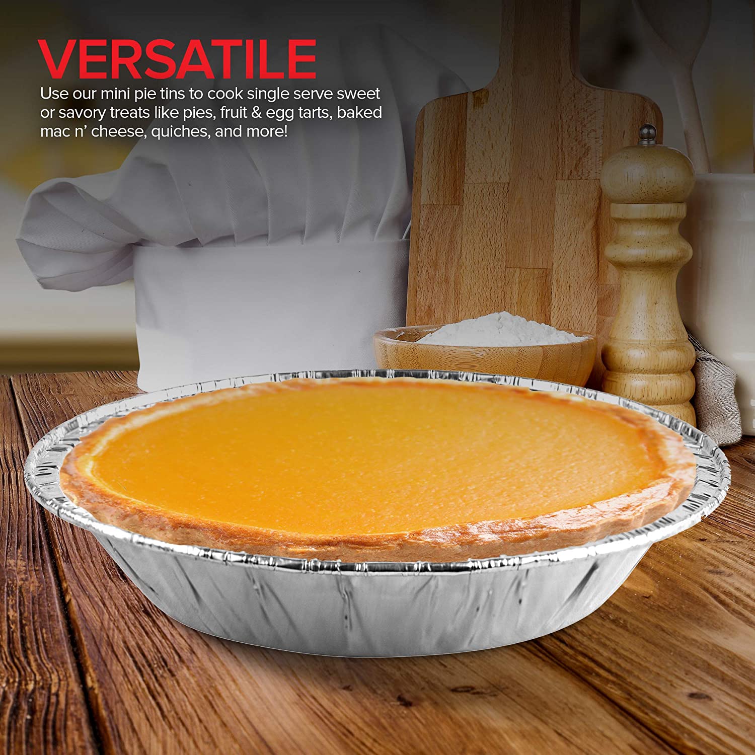 Stock Your Home 6 Inch Aluminum Foil Pie Pans are the perfect solution for any baking need! Made of premium quality, heavy-duty aluminum foil, these disposable mini pie tins are designed to be multifunctional. You can use them to cook single serve sweet treats like pies, fruit & egg tarts, mini cheese cakes, and apple crisps. Or cook savory appetizers like baked mac n’ cheese, meat/veggie pies, quiches, and cheese tarts.