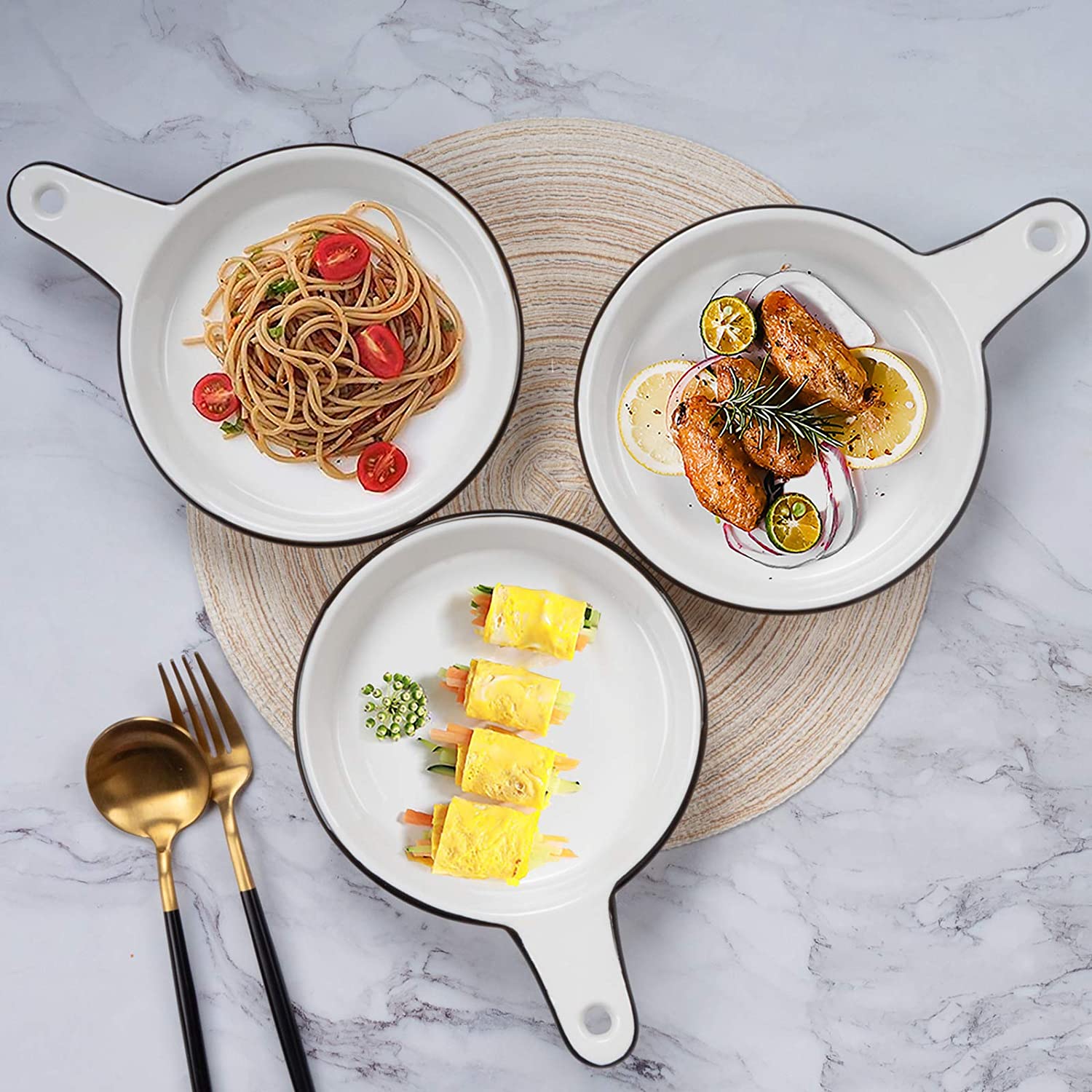 AQUIVER 6.25" Ceramic Pie Pan is the perfect tool to wow guests with your amazing culinary skills! Its minimalist glass glaze and smooth inner wall go perfectly with its unique outer ruffled groove shape, giving a classic round black line edge that adds a stylish and concise touch to any tableware. Not only is it beautiful, but it also has thickened and deepened edges to prevent food from overflowing and make it easy to stack and store when not in use.